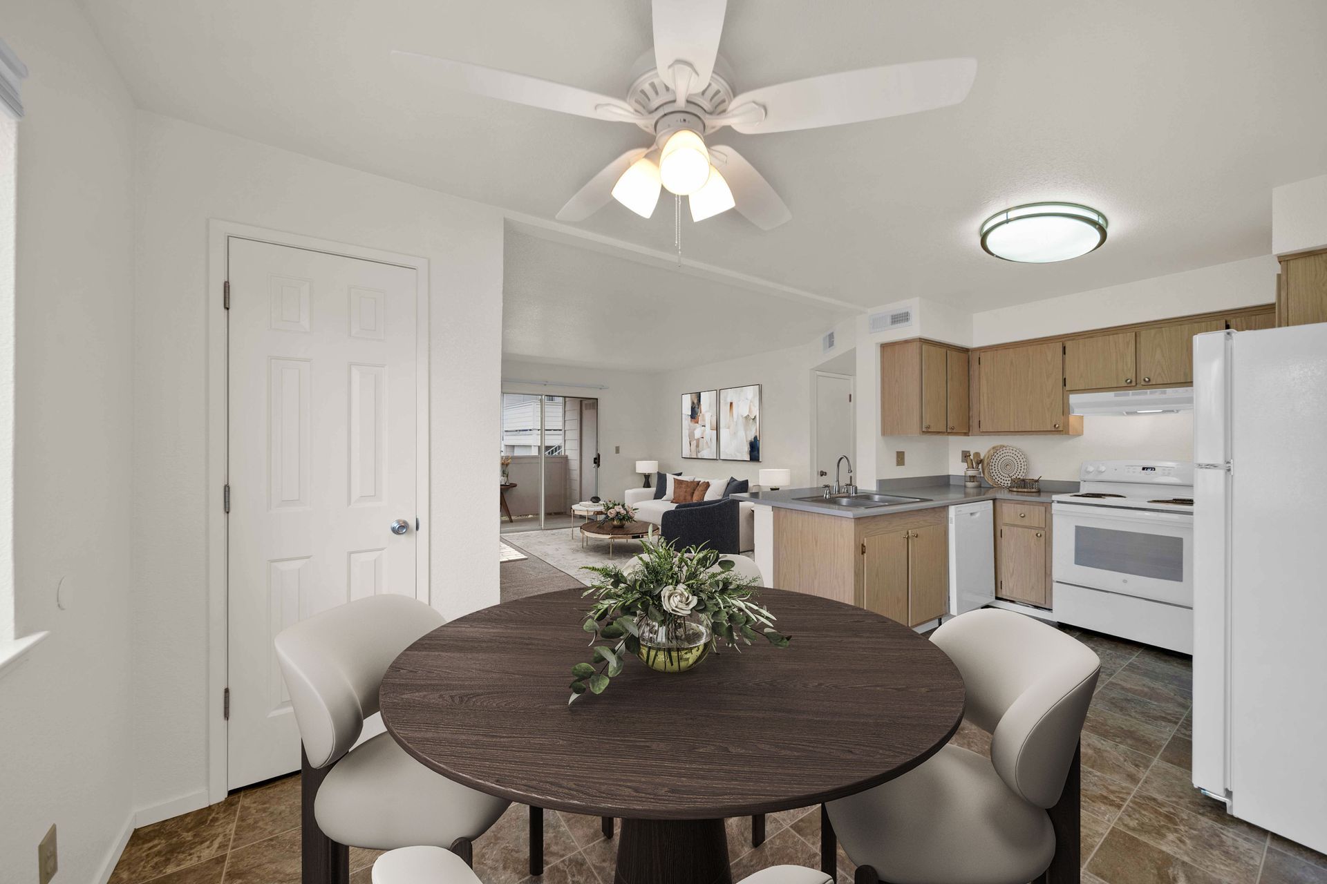 1 bedroom, 1 bathroom - dining room with view into living room and kitchen